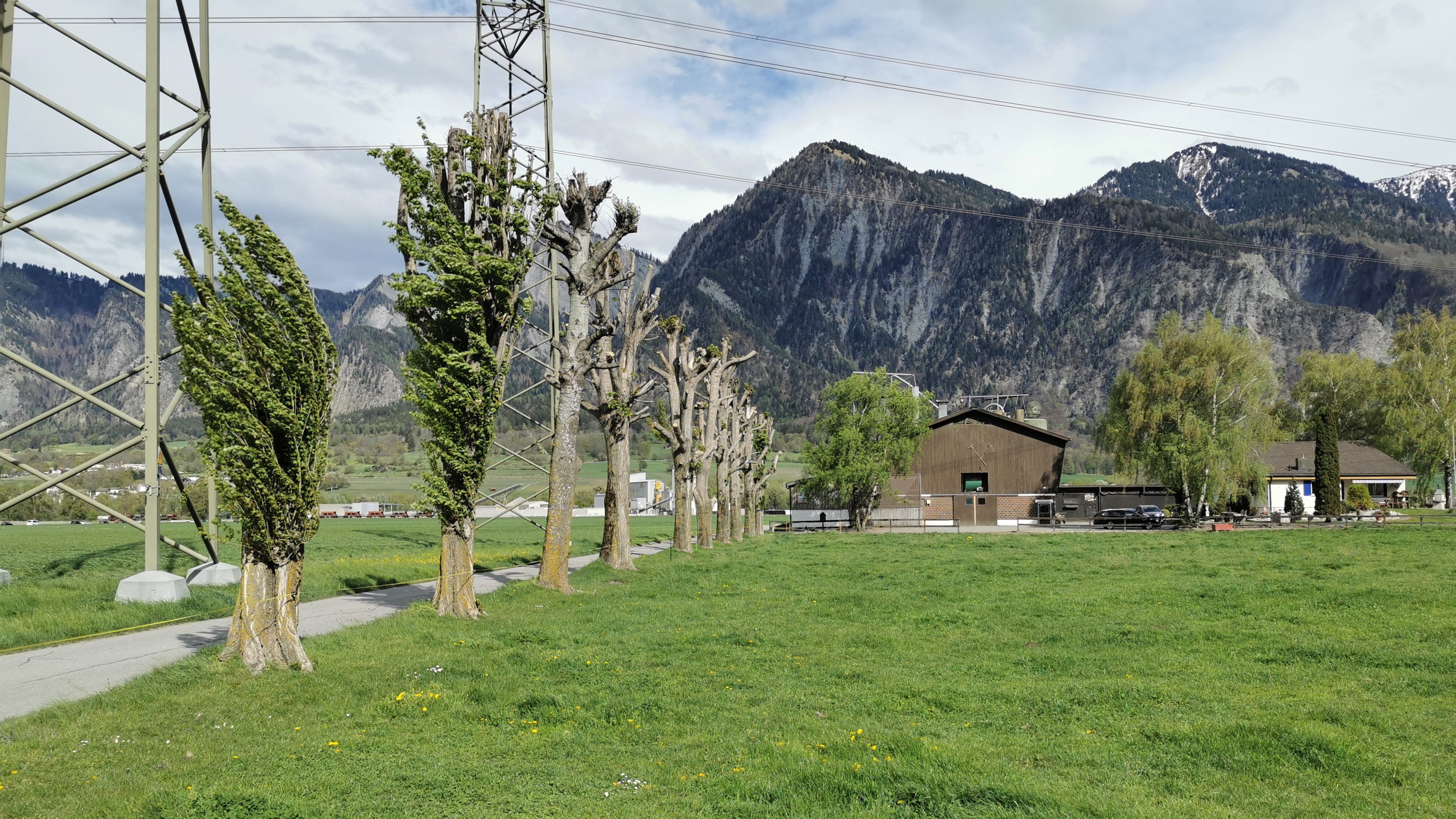 - Blick nach Osten zu dem, mit Pappeln bestandener Zufahrtsweg (Hornweg) zum Horn-Gut.